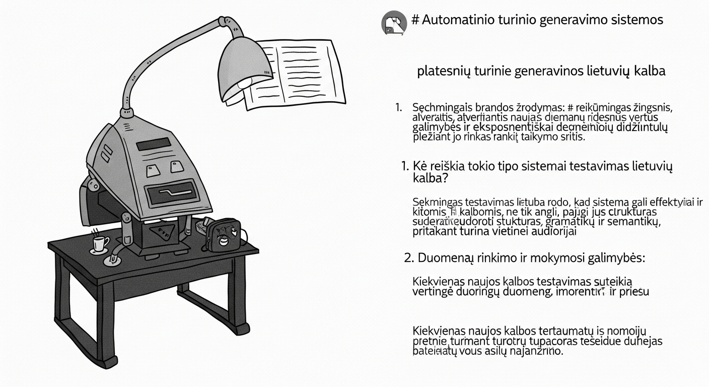 * **AI pagrindu veikiančio turinio generavimo variklio integraciją:** Variklis apmokytas su lietuvių kalbos duomenimis, užtikrinant sklandų ir kontekstualų turinio generavimą.